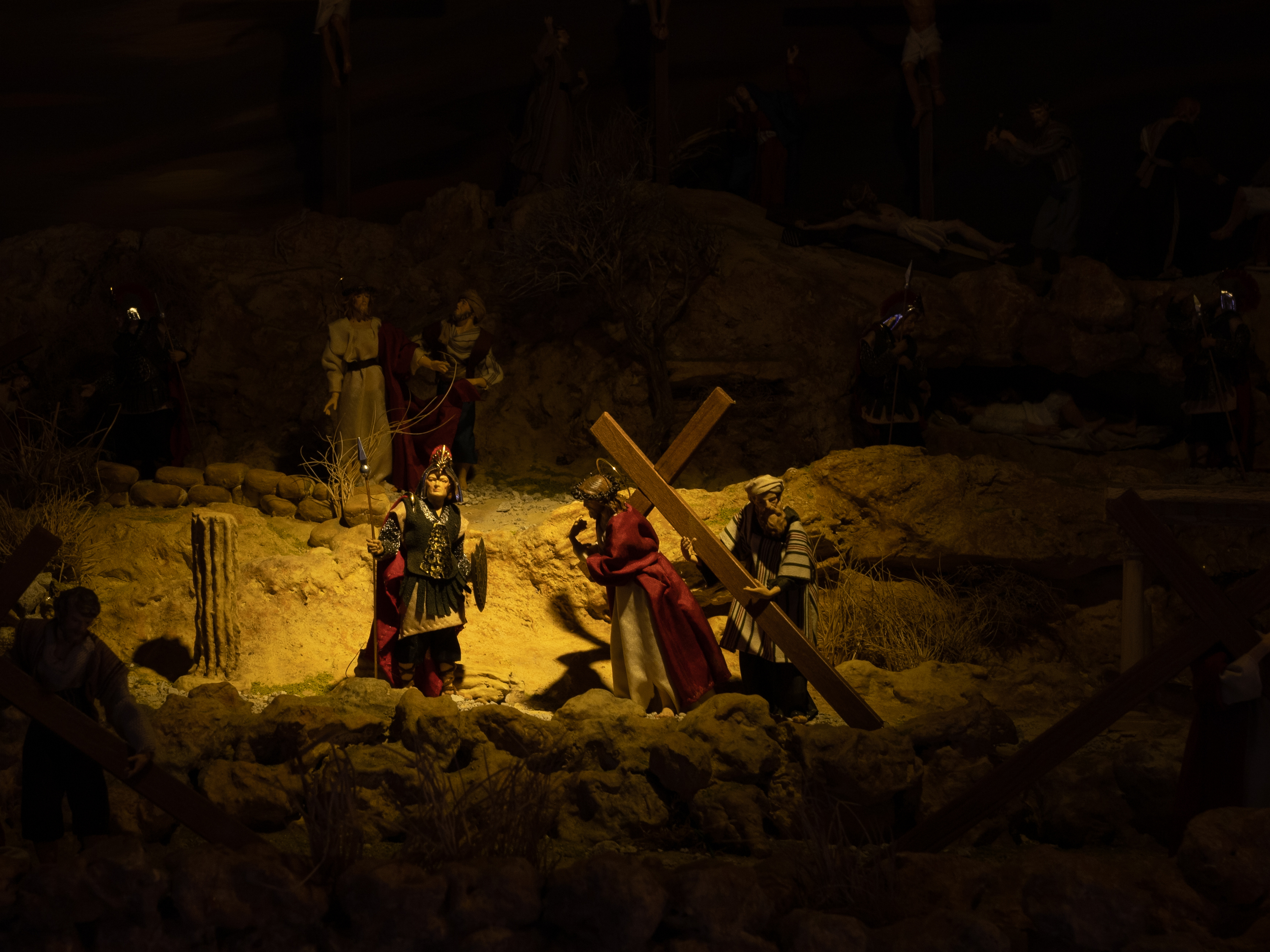 Dort blieb Jesus vierzig Tage lang und wurde vom Satan in Versuchung geführt. Er lebte bei den wilden Tieren und die Engel dienten ihm."