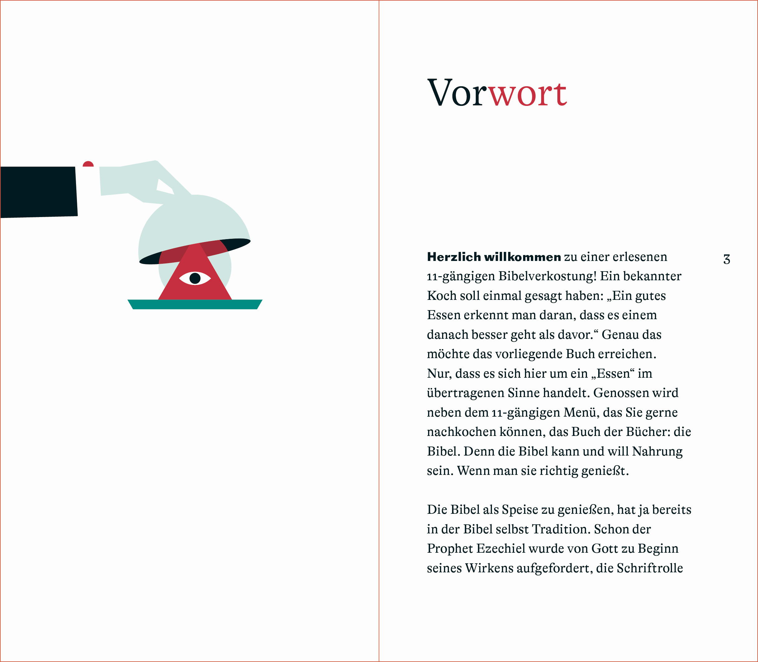 Bibelwerksdirektorin Elisabeth Birnbaum vergleicht die Bibel mit einem erlesenen mehrgängigen Menü und zeigt damit anschaulich und leicht verständlich den Weg zu einem Bibelgenuss ohne Reue. Die originelle Bildsprache stammt in bewährter Weise von Illustrator David Kassl. Nach dem Erfolg der CRASHKURS-Bände erbringt das Duo damit neuerlich den Beweis, dass Bibelkompetenz und Unterhaltung kein Widerspruch sind.